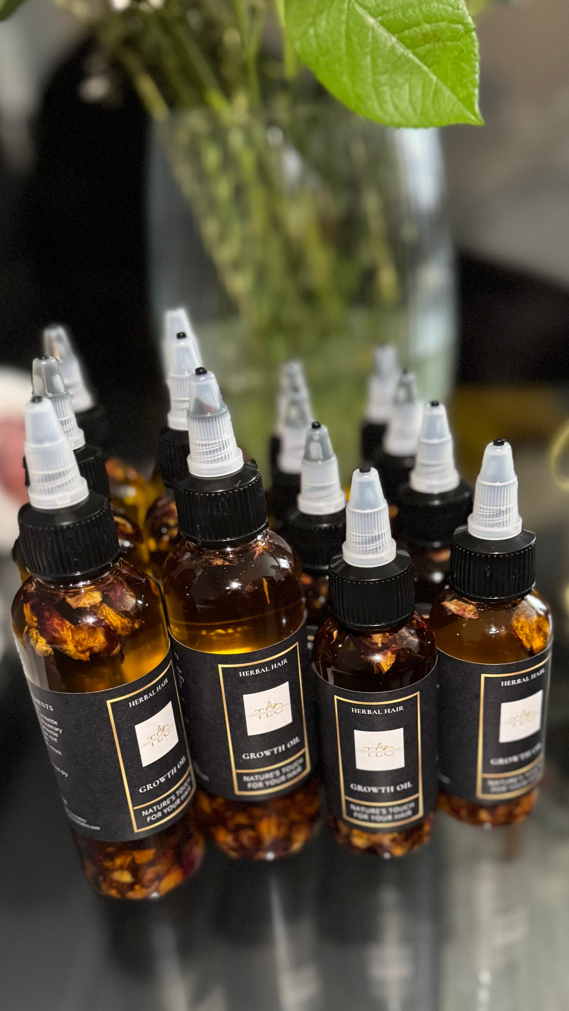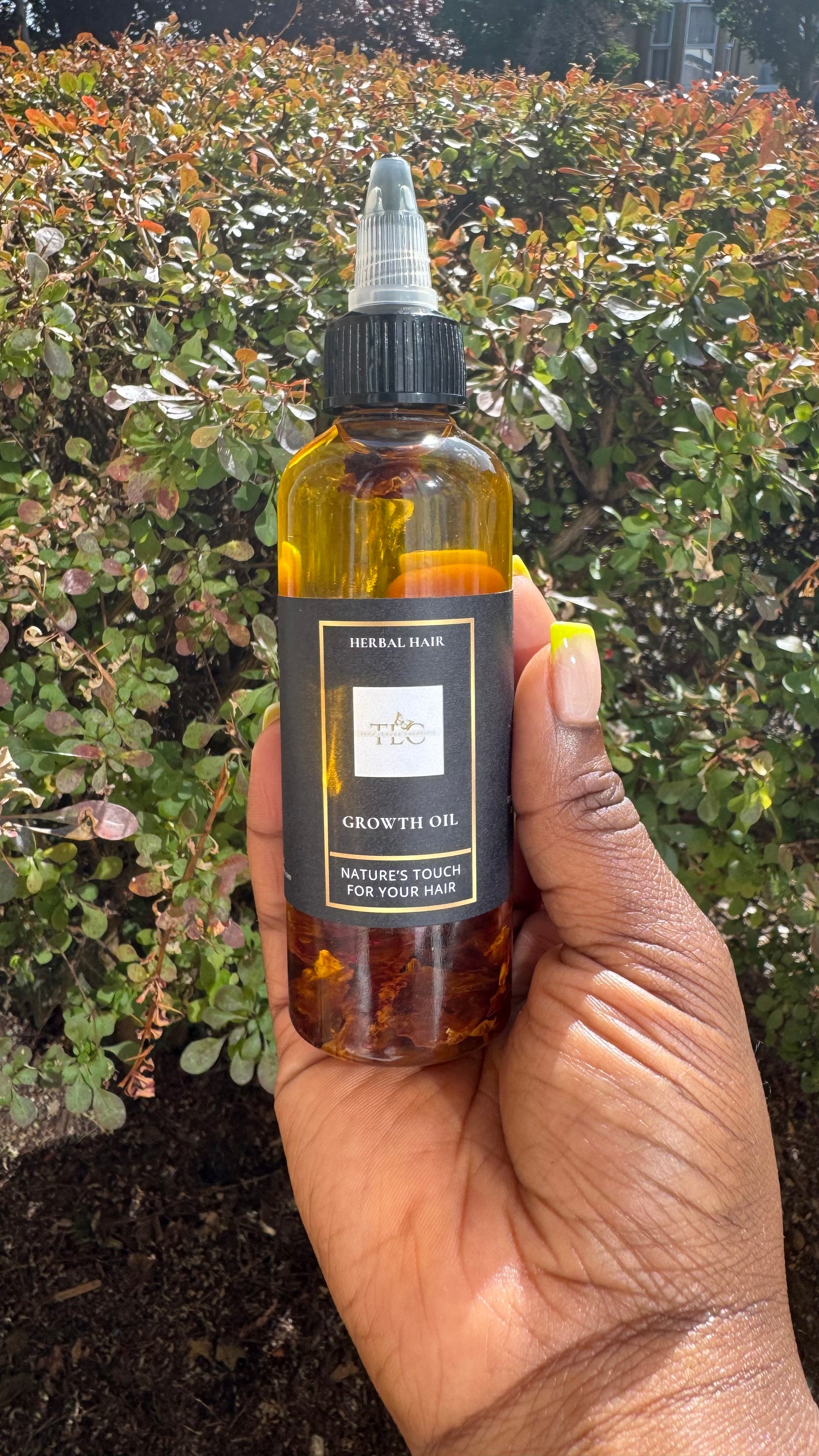 Our Herbal growth oil is a blend of infused plants that have a number of medicinal properties all natural herbs, spice, and roots to offer you healthy hair and scalp to promote healthy hair growth.